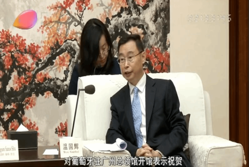 2018年10月19日上午,广州市市长温国辉在市政府会见葡萄牙外交部部长奥古斯托·桑托斯·席尔瓦。葡萄牙外交部副部长奥利古·必蓝特·迪阿斯、驻华大使杜傲杰、驻广州总领事安德烈·索布拉尔·科尔代罗等参加会见。广东外语外贸大学西语学院教师、中国葡语国家研究创新团队负责人尚雪娇为温国辉市长提供现场翻译。