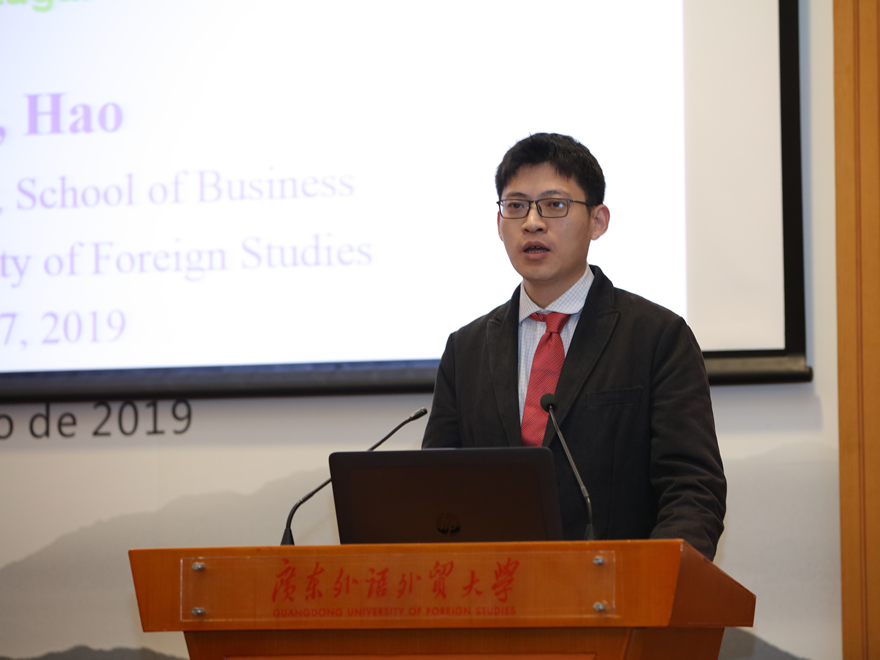 在第二阶段的“孔子学院与中葡文化交流研讨会”中,团队负责人丁浩和尚雪娇分别做了主题发言。丁浩指出,粤港澳大湾区的建设对于促进中国与葡语国家交流与发展具有重要意义,应当进一步发挥澳门的平台作用,借助广东的地缘优势,深化粤澳合作在促进中葡文化交流中的作用。尚雪娇阐述了葡萄牙孔子学院的发展现状,介绍了孔子学院在中葡文化交流中的发展特点,并提出两校联合培养中葡两国的双语人才,以及构建波尔图孔院与佛得角孔院交流平台的未来发展建议。