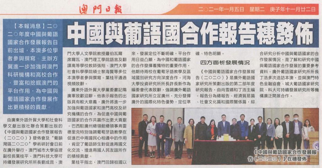 5. 澳门日报,“中国与葡语国合作报告穗发布”(20210105,第B07版)